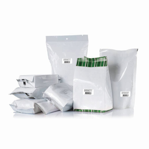 Изготовлены из матовой бумаги белого цвета плотностью 70 г/м2. Универсальные этикетки совместимы с лазерными и струйными принтерами. Экономичная упаковка содержит 50 листов формата А4, на каждом листе прямоугольной формы — 65 этикеток размером 38х21,2 мм. Возможность переклеивания отсутствует.