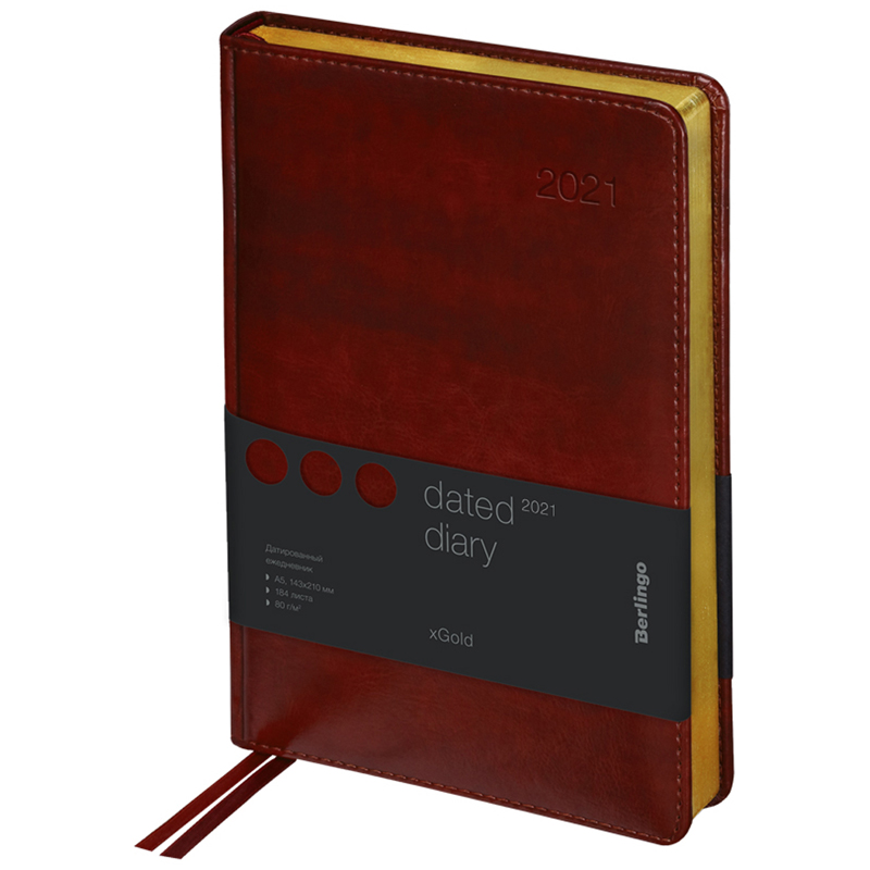 Ежедневники Berlingo xGold изготовлены из глянцевого рельефного кожзаменителя, имитирующего кожу первоклассной выделки. Ежедневник датированный формата A5 (150*215 мм) с обложкой с поролоновой прослойкой. Золотой фольгированный срез блока. 184 листа. Цвет обложки - коричневый. Высококачественная кремовая бумага повышенной плотности 80 г/м2, пантонная печать блока в 2 краски, справочный материал, географические карты на форзацах. Перфорированные уголки блока. 2 закладки-ляссе. Отрывные заметки и бланки-извещения о ДТП. В подарок 3 комплекта стикеров.