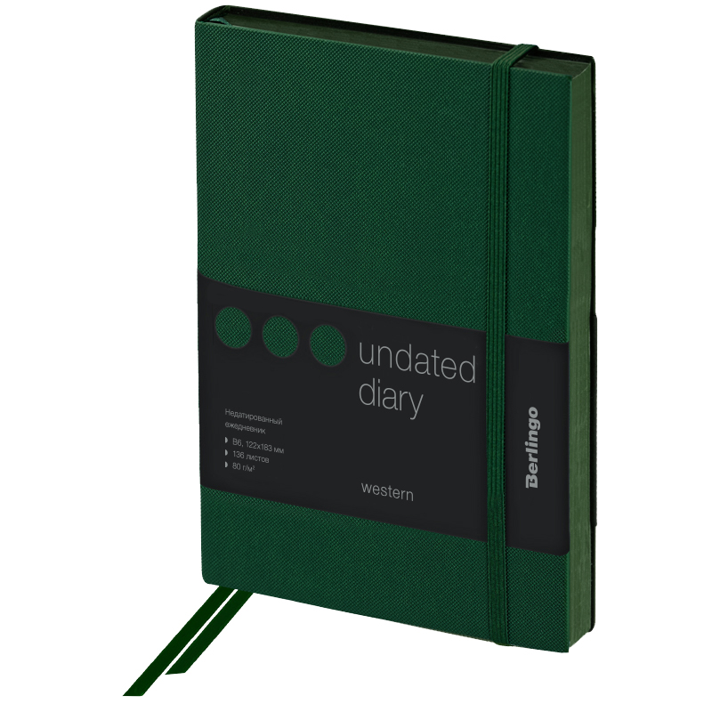 УЦЕНКА - Ежедневник недатированный, В6, 136л., кожзам, Berlingo "Western", с резинкой, зеленый (осн 276449)