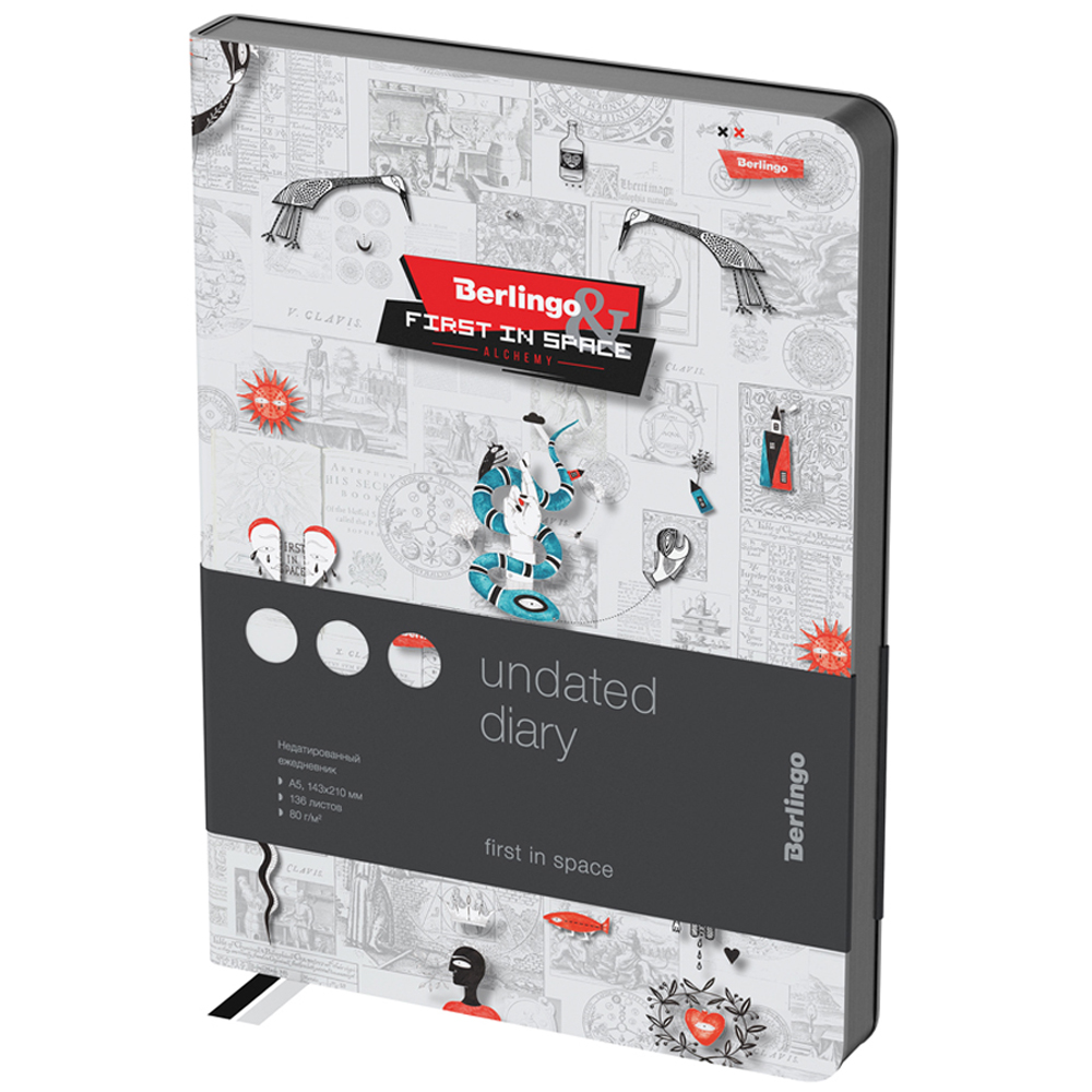 УЦЕНКА - Ежедневник недатированный, А5, 136л., кожзам, Berlingo "First in Space", черный срез, с рисунком (осн 338515)