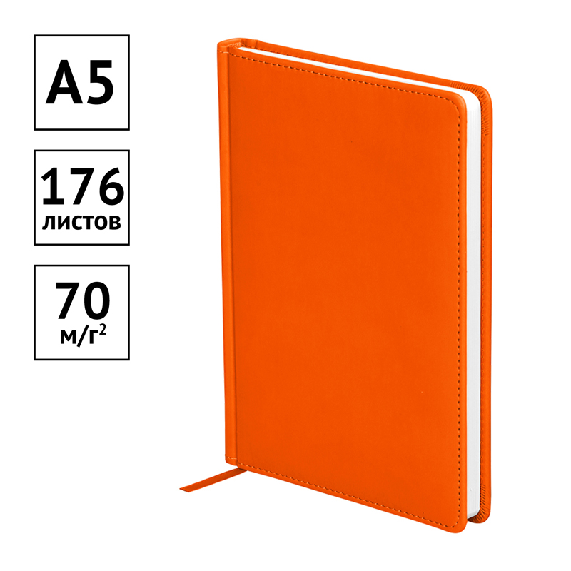 Стильный датированный ежедневник на 2024 год OfficeSpace формата А5 серии Winner станет отличным помощником в планировании дел. Ежедневник имеет размер 145*205 мм. Внутренний блок – 176 листов офсетной белой бумаги плотностью 70 г/м2 с печатью в 2 краски. Обложка с поролоновой прослойкой изготовлена из высококачественной экокожи оранжевого цвета с гладкой мягкой матовой поверхностью. Подходит для всех видов полиграфического тиснения. Перфорированные скруглённые уголки и закладка-ляссе обеспечат комфорт и удобство при использовании ежедневника. Внутри есть полезный справочный материал. Датированный ежедневник подходит под персонализацию. Изделие имеет индивидуальную упаковку.<br/>• Формат: А5;<br/>• Размер: 145*205 мм;<br/>• Количество листов: 176;<br/>• Материал обложки: экокожа; <br/>• Цвет обложки: оранжевый.