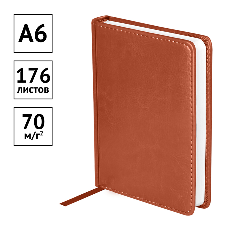 Стильный датированный ежедневник на 2024 год OfficeSpace формата А6 серии Nebraska станет отличным помощником в планировании дел. Ежедневник имеет размер 110*150 мм. Внутренний блок – 176 листов офсетной белой бумаги плотностью 70 г/м2 с печатью в 2 краски. Обложка с поролоновой прослойкой изготовлена из высококачественной экокожи коричневого цвета, имитирующей натуральную глянцевую кожу. Перфорированные скруглённые уголки и закладка-ляссе обеспечат комфорт и удобство при использовании ежедневника. Внутри есть полезный справочный материал. Датированный ежедневник подходит под персонализацию. Изделие имеет индивидуальную упаковку.
