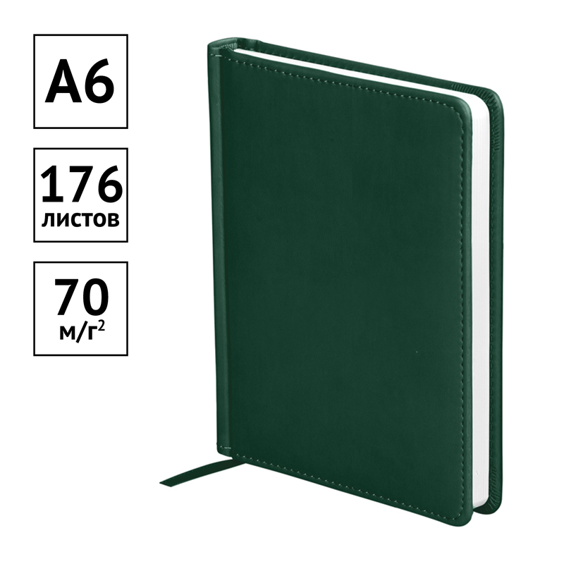 Стильный датированный ежедневник на 2024 год OfficeSpace формата А6 серии Winner станет отличным помощником в планировании дел. Ежедневник имеет размер 110*150 мм. Внутренний блок – 176 листов офсетной белой бумаги плотностью 70 г/м2 с печатью в 2 краски. Обложка с поролоновой прослойкой изготовлена из высококачественной экокожи зелёного цвета с гладкой мягкой матовой поверхностью. Подходит для всех видов полиграфического тиснения. Перфорированные скруглённые уголки и закладка-ляссе обеспечат комфорт и удобство при использовании ежедневника. Внутри есть полезный справочный материал. Датированный ежедневник подходит под персонализацию. Изделие имеет индивидуальную упаковку.<br/>• Формат: А6;<br/>• Размер: 110*150 мм;<br/>• Количество листов: 176;<br/>• Материал обложки: экокожа; <br/>• Цвет обложки: зелёный.