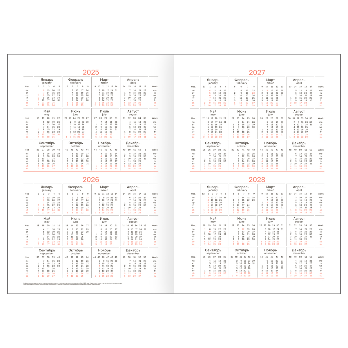 Датированный ежедневник на 2025 год BG Ariane формата А5 с обложкой из балакрона с поролоновой прослойкой идеален для ежедневного использования. Внутренний блок состоит из 176 листов офсетной бумаги плотностью 70 г/м2 с пантонной печатью в 2 краски. Датированный ежедневник представлен с обложкой красного цвета в размере 145*205 мм. Справочная информация, ежемесячный планер, закладка-ляссе и перфорированные уголки сделают его использование максимально комфортным. Индивидуальная упаковка в пакет.