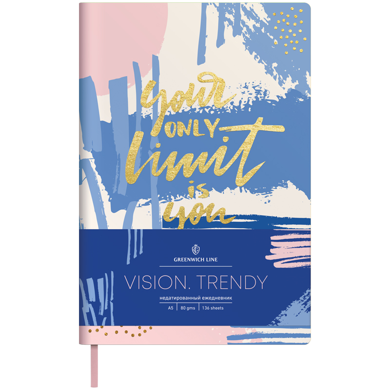 Ежедневник недатированный в мягкой обложке, выполненной из искусственной кожи с ярким и модным принтом, нанесенными УФ-печатью. Внутренний блок из тонированной офсетной бумаги кремового цвета повышенной плотности 80 г/м2