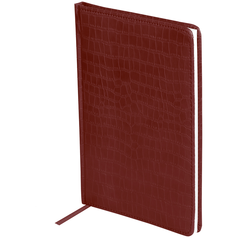 Ежедневник недатированный формата А5 из коллекции «Croco». Обложка изготовлена из высококачественного кожзаменителя, имитирующго полуматовую крокодиловую кожу, с поролоновой прослойкой, цвет обложки - бордовый. Подходит для всех видов полиграфического тиснения. Внутренний блок состоит из 160 листов офсетной бумаги плотностью 70 г/м2, печать блока в 2 краски, справочный материал. На форзацах географические карты России и Мира. Удобная закладка-ляссе и перфорированные уголки.