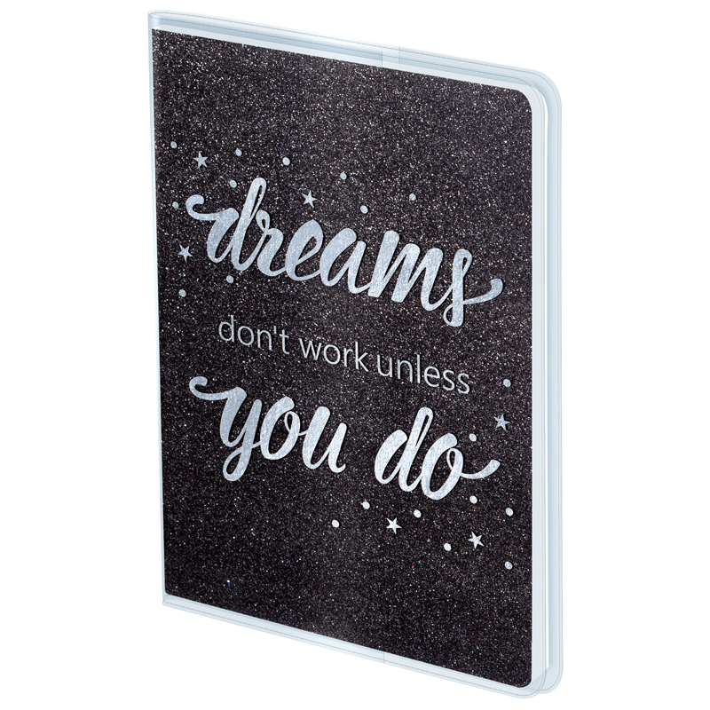 Недатированный ежедневник в ПВХ-обложке формата А5, 96 листов. Эффекты -тиснение фольгой, глиттер. ТМ Greenwich Line. Белый блок, плотность бумаги 70 г/м2 Размер 140*200 мм