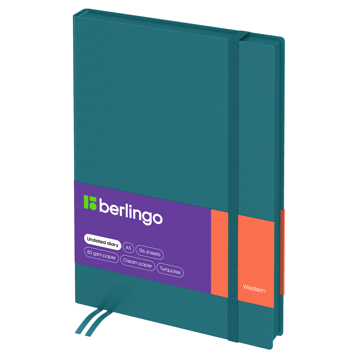 Изящный недатированный ежедневник Berlingo "Western" формата А5 с интегральной обложкой из экокожи со стильным тиснением под карбон идеален для повседневного использования. Срез в цвет зеленой обложки приятно сочетается с общим оформлением ежедневника. Внутренний блок состоит из 136 листов высококачественной кремовой бумаги повышенной плотности 80 г/м² с пантонной печатью в 2 краски. <br/>Перфорированные уголки листов и две закладки-ляссе сделают использование ежедневника Berlingo Western комфортным. Ежедневник Berlingo подходит под персонализацию, а три комплекта стикеров станут приятным подарком. Внутри располагаются отрывные заметки, бланки извещения о ДТП и справочные материалы. <br/>• Формат: A5;<br/>• Размер: 143*210 мм;<br/>• Количество листов: 136;<br/>• Материал обложки: экокожа;<br/>• Цвет обложки: бирюзовый.