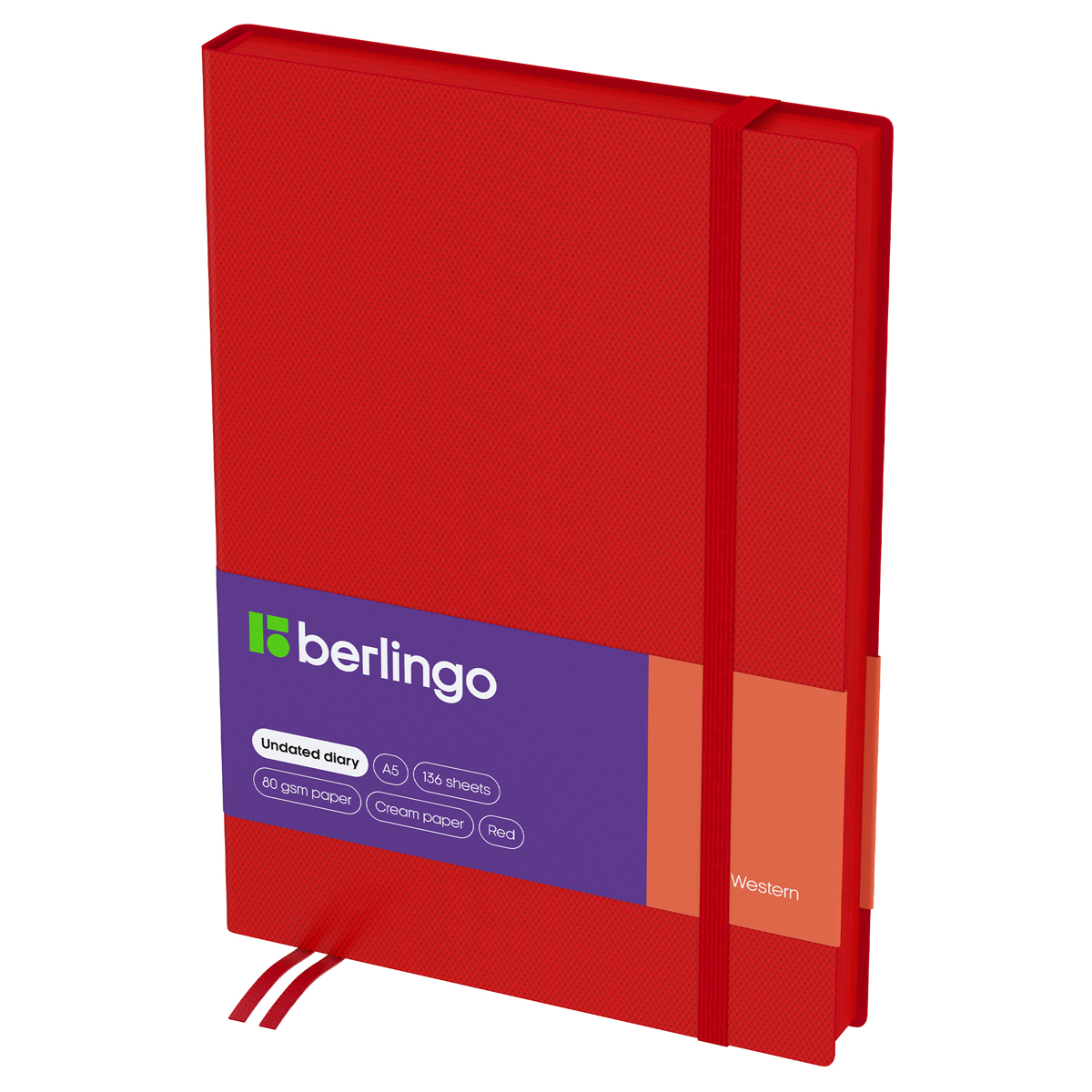 Изящный недатированный ежедневник Berlingo Western формата А5 с полужесткой обложкой из экокожи со стильным тиснением под карбон идеален для повседневного использования. Срез в цвет красной обложки приятно сочетается с общим оформлением ежедневника. Внутренний блок состоит из 136 листов высококачественной кремовой бумаги повышенной плотности 80 г/м² с пантонной печатью в 2 краски. Размер недатированного ежедневника – 143 на 210 мм.