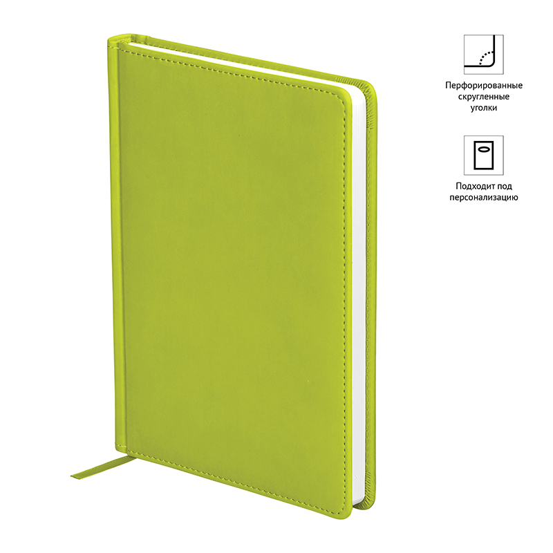 Элегантный недатированный ежедневник OfficeSpace формата А5 серии Winner в твёрдой обложке салатового цвета, выполненной из высококачественного кожзаменителя с гладкой матовой поверхностью и поролоновой прослойкой. Внутренний блок состоит из 136 листов офсетной бумаги плотностью 70 г/м2 и печатью в 2 краски. Недатированный ежедневник представлен в размере 145*205 мм.<br/>Перфорированные уголки и закладка-ляссе обеспечат комфорт и удобство при использовании ежедневника. Внутри на форзацах содержатся географические карты России и мира и справочные материалы. Недатированный ежедневник подходит под персонализацию. <br/>• Формат: А5;<br/>• Размер: 145*205 мм;<br/>• Количество листов: 136;<br/>• Материал обложки: экокожа; <br/>• Цвет обложки: салатовый.