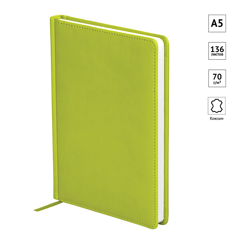 Элегантный недатированный ежедневник OfficeSpace формата А5 серии Winner в твёрдой обложке салатового цвета, выполненной из высококачественного кожзаменителя с гладкой матовой поверхностью и поролоновой прослойкой. Внутренний блок состоит из 136 листов офсетной бумаги плотностью 70 г/м2 и печатью в 2 краски. Недатированный ежедневник представлен в размере 145*205 мм.