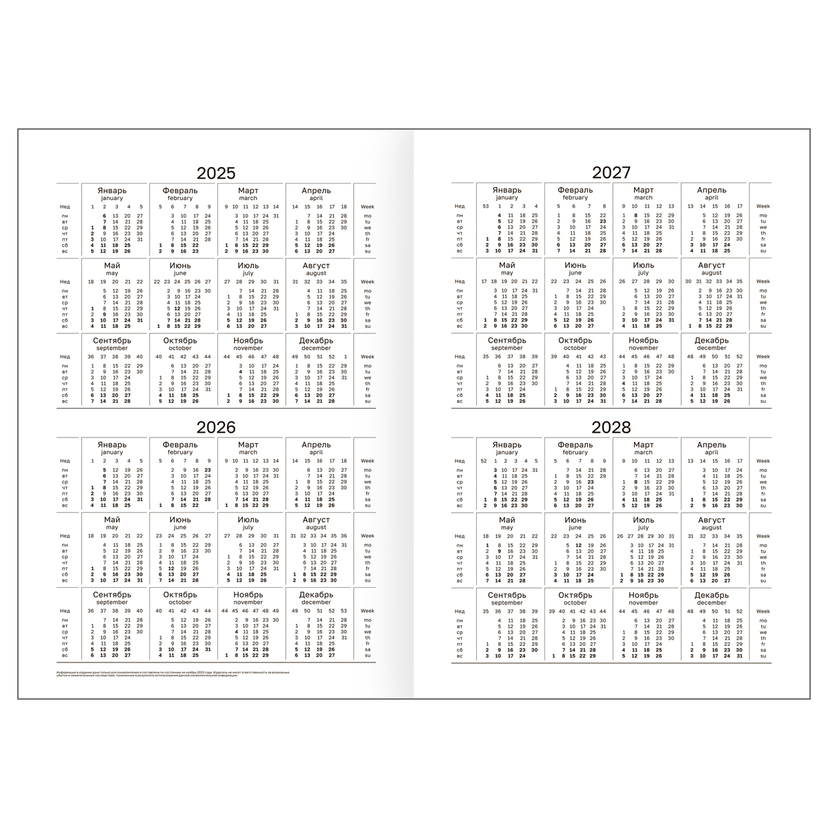 Ежедневник BG формата А5 станет незаменимым помощником для планирования встреч, звонков и переговоров. Изделие имеет твёрдую обложку из бумвинила коричневого цвета. Переплёт прошит и надёжно держит блок. Внутри изделия 160 листов, изготовленных из офсетной бумаги плотностью 65 г/м2. Ежедневник BG недатирован, но у него имеется справочный материал внутри блока.