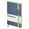 Изделие представлено в размере 170*250 мм. Внутренний блок состоит из 136 листов высококачественной кремовой бумаги повышенной плотности 70 г/м2 с пантонной печатью в 2 краски. Яркий срез и резинка создают эффектный визуальный контраст с основным цветом обложки, делая ежедневник более привлекательным.