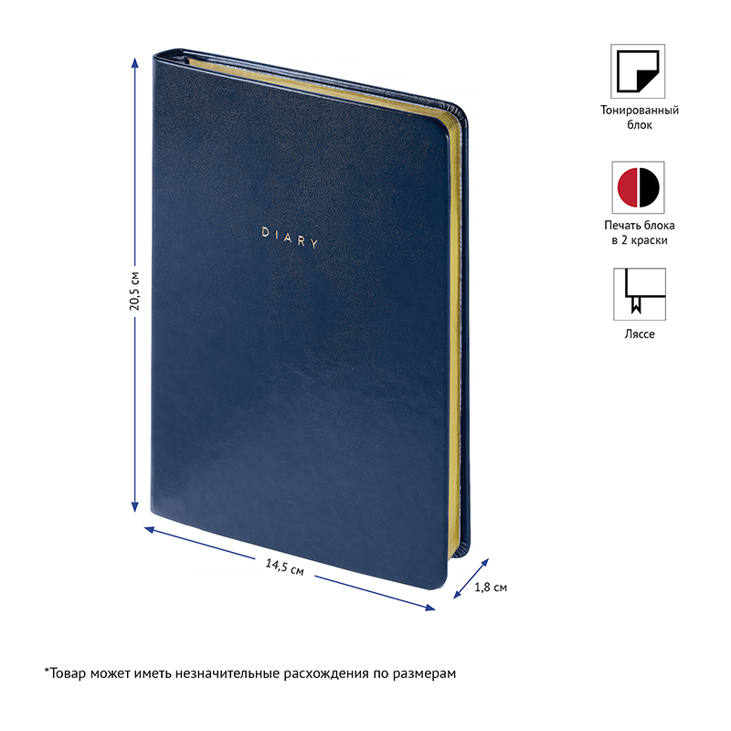 Закладка-ляссе обеспечит комфорт и удобство при использовании ежедневника. Внутри есть удобный карман для визиток, карточек, записок. Недатированный ежедневник подходит под персонализацию.