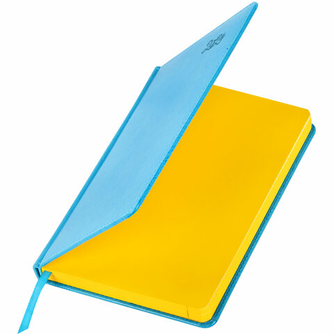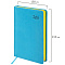 Твердая обложка стилизована под гладкую кожу яркого бирюзового цвета. Подходит для горячего тиснения. Срез и форзац ежедневника окрашены на контрасте с цветом обложки, что придает ему особый шарм. Дополнением является закладка-ляссе, с помощью которой при необходимости можно быстро открыть ежедневник на нужной странице. Помимо прочего, ежедневник снабжен обширным справочным материалом.