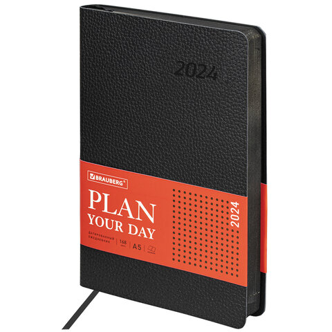 Ежедневник недатированный А5 143х210мм BRAUBERG Deluxe, под кожу, магнит 160л, черный, 117414, 117141