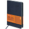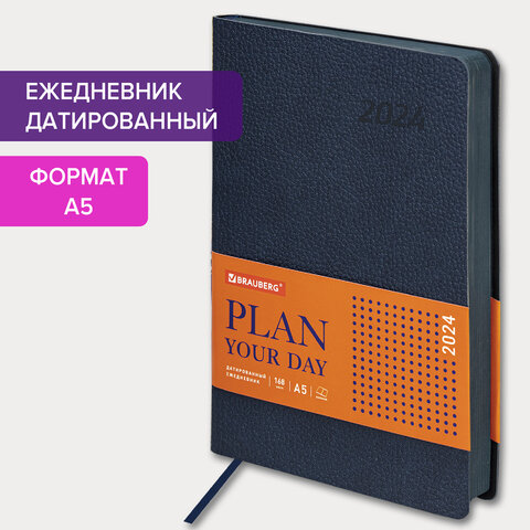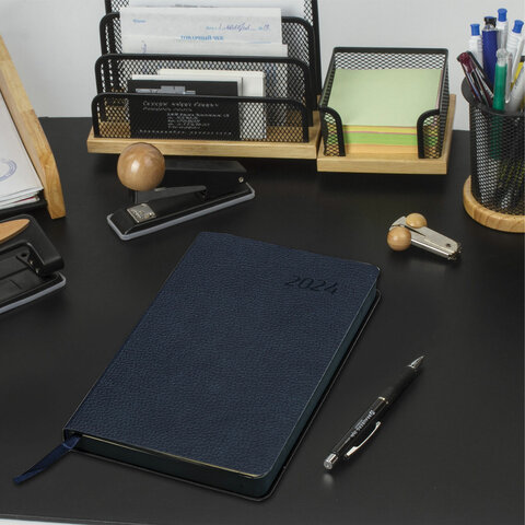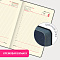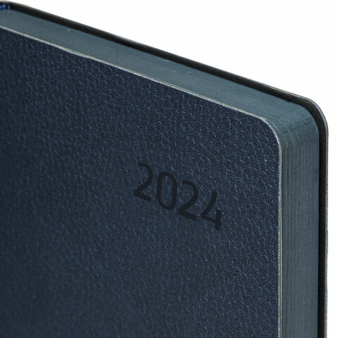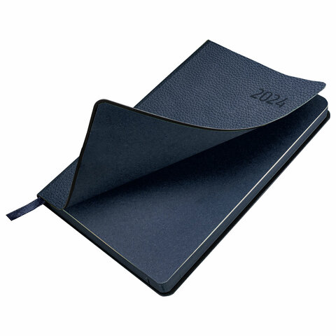 Внутренний блок включает 168 листов тонированной бумаги плотностью 70 г/м2. Каждая страничка имеет перфорированный угол. Благодаря стандартному формату А5 (138х213 мм) ежедневник удобно использовать как в офисе, так и на выездных деловых встречах. Мягкая (интегральная) обложка стилизована под фактурную кожу классического темно-синего цвета. Подходит для горячего тиснения. Дополнением является закладка-ляссе, с помощью которой при необходимости можно быстро открыть ежедневник на нужной странице. Помимо прочего, ежедневник снабжен справочным материалом.