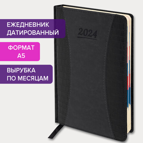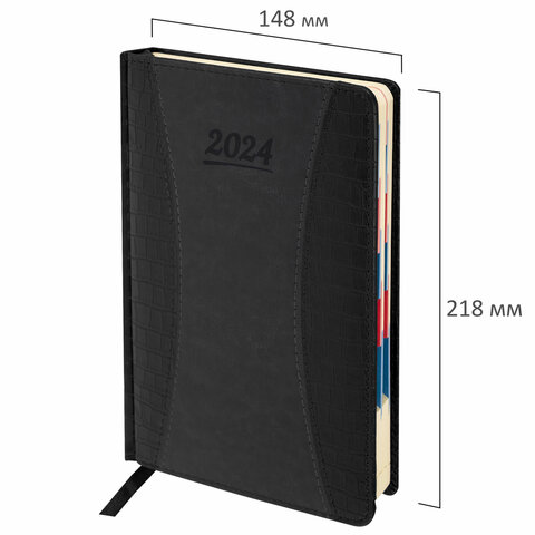 Ежедневник недатированный А5 143х210мм BRAUBERG Deluxe, под кожу, магнит 160л, черный, 117414, 117141