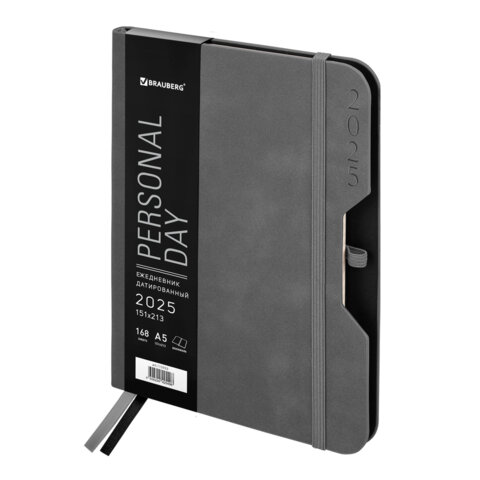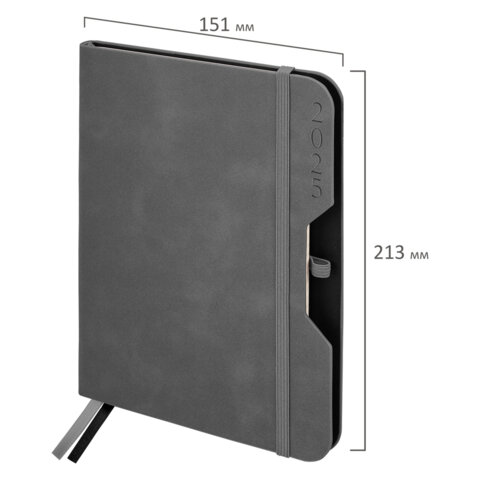 Ежедневник недатированный А5 148x218 мм BRAUBERG "Optimal", под кожу, 160 листов, резинка, держатель для ручки, серый, 118644