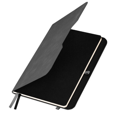 Ежедневник недатированный А5 148x218 мм, BRAUBERG "Inspiration", под кожу, застежка, цветной срез, 160 листов, черный, 118648