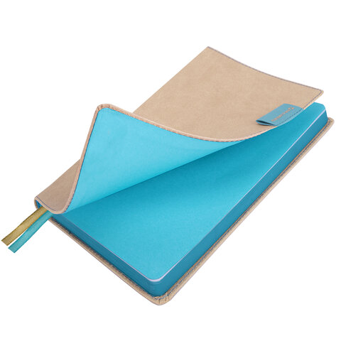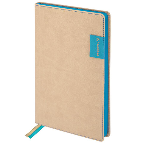 Ежедневник недатированный А5 138х213 мм BRAUBERG "Cowboy", под кожу, застежка 160 л., голубой, 116197