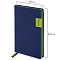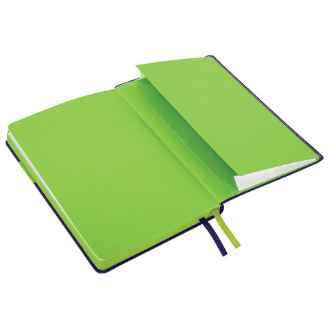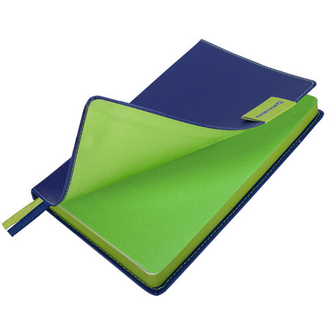 Внутренний блок включает 136 листов белой бумаги плотностью 70 г/м2. Благодаря стандартному формату А5 ежедневник удобно использовать как в офисе, так и на выездных деловых встречах. Интегральная обложка стилизована под гладкую кожу и прошита по периметру. Подходит для горячего тиснения. На внутренней стороне задней обложки есть декоративный конверт для разных мелочей в виде визиток, напоминалок или других милых и полезных мелочей. Срез и форзац ежедневника окрашены в контрастный цвет с обложкой, что придает ему особый шарм. Дополнением являются две закладки-ляссе, с помощью которых можно быстро открыть или зафиксировать ежедневник на нужной странице, а также держатель для ручки на контрасте с обложкой.