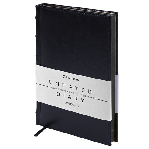 Ежедневник недатированный А5 143х210мм BRAUBERG Deluxe, под кожу, магнит 160л, черный, 117414, 117141