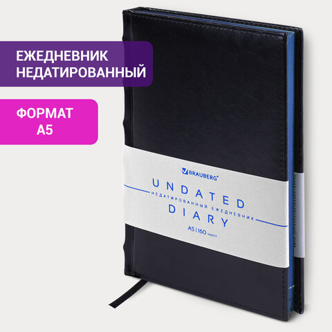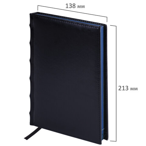 Ежедневник недатированный А5 143х210мм BRAUBERG Deluxe, под кожу, магнит 160л, черный, 117414, 117141