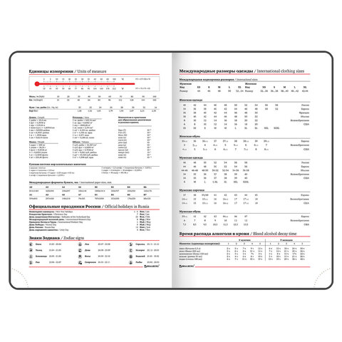 Внутренний блок включает 136 листов белой бумаги плотностью 70 г/м2. Каждая страничка имеет перфорированный угол. Благодаря стандартному формату А5 (138х213 мм) ежедневник удобно использовать как в офисе, так и на выездных деловых встречах. Твердая обложка стилизована под зеркальную кожу фиолетового цвета. Подходит для горячего тиснения. Дополнением является закладка-ляссе, с помощью которой при необходимости можно быстро открыть ежедневник на нужной странице. Помимо прочего ежедневник снабжен справочным материалом.