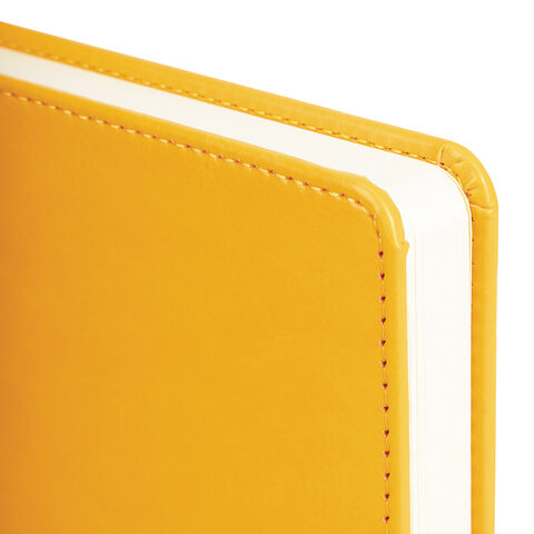 Внутренний блок включает 160 листов тонированной бумаги плотностью 70 г/м2. Каждая страничка имеет перфорированный угол. Благодаря стандартному формату А5 ежедневник удобно использовать как в офисе, так и на выездных деловых встречах. Твердая обложка, стилизованная под гладкую кожу, подходит для горячего тиснения. Дополнением является закладка-ляссе, с помощью которой при необходимости можно быстро открыть ежедневник на нужной странице. Помимо прочего ежедневник снабжен обширным справочным материалом.