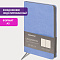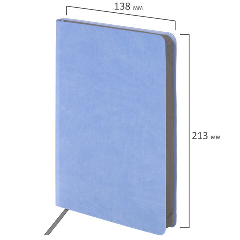 Внутренний блок включает 136 листов тонированной бумаги плотностью 70 г/м2. Каждая страничка имеет перфорированный угол. Благодаря стандартному формату А5 (138х213 мм) ежедневник удобно использовать как в офисе, так и на выездных деловых встречах. Мягкая (интегральная) обложка стилизована под фактурную кожу. Подходит для горячего тиснения. Дополнением является закладка-ляссе, с помощью которой при необходимости можно быстро открыть ежедневник на нужной странице. Помимо прочего ежедневник снабжен справочным материалом. Выполнен в нежном голубом цвете.