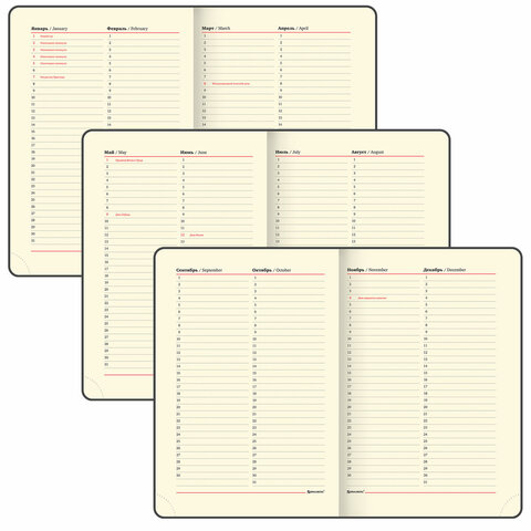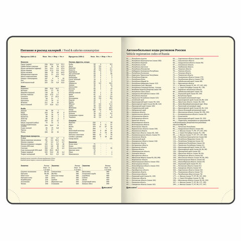 Внутренний блок включает 160 листов тонированной бумаги плотностью 70 г/м2. Каждая страничка имеет перфорированный угол. Благодаря стандартному формату А5 (138х213 мм) ежедневник удобно использовать как в офисе, так и на выездных деловых встречах. Мягкая (интегральная) обложка стилизована под гладкую кожу. Подходит для горячего тиснения. Снабжен резинкой-фиксатором, благодаря чему ежедневник не откроется в сумочке или портфеле и листы не помнутся. Дополнением является закладка-ляссе, с помощью которой при необходимости можно быстро открыть ежедневник на нужной странице. Помимо прочего ежедневник снабжен справочным материалом.