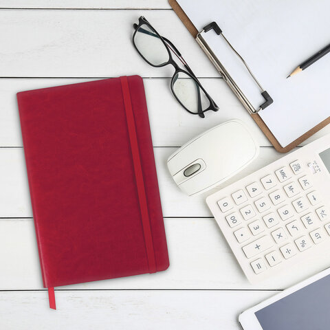 Ежедневник недатированный А5 143х210мм BRAUBERG Deluxe, под кожу, магнит 160л, красный, 117142