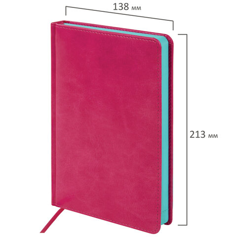 Ежедневник недатированный, А5, 143х210 мм, BRAUBERG "Dainty", под кожу, магнитная застежка, 160 л., розовый, 117143