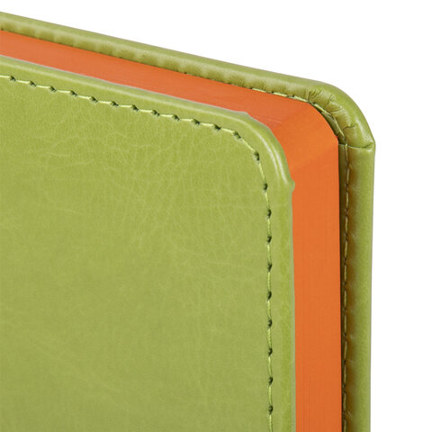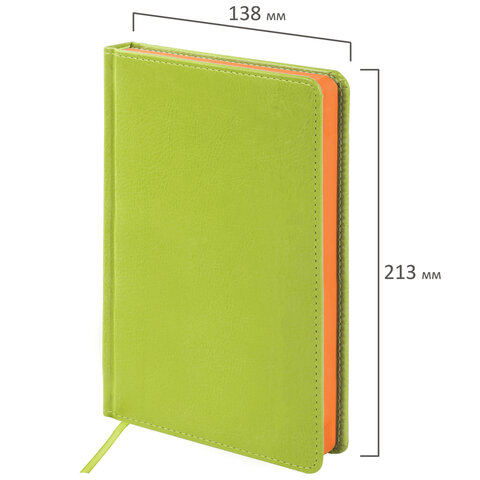 Внутренний блок включает 136 листов белой бумаги плотностью 70 г/м2. Каждая страничка имеет перфорированный угол. Благодаря стандартному формату А5 (138х213 мм) ежедневник удобно использовать как в офисе, так и на выездных деловых встречах. Твердая обложка стилизована под гладкую кожу. Подходит для горячего тиснения. Срез и форзац ежедневника окрашены на контрасте с цветом обложки, что придает ему особый шарм. Дополнением является закладка-ляссе, с помощью которой при необходимости можно быстро открыть ежедневник на нужной странице. Помимо прочего ежедневник снабжен обширным справочным материалом.