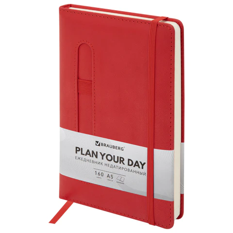 Ежедневник недатированный А5 148x218 мм BRAUBERG "Optimal", под кожу, 160 листов, резинка, держатель для ручки, красный, 118641