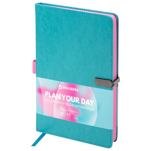Ежедневник недатированный А5 148x218 мм, BRAUBERG "Inspiration", под кожу, застежка, цветной срез, 160 листов, бирюзовый, 118651