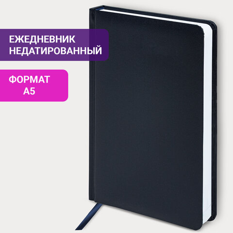 Ежедневник недатированный А5 148x218 мм, BRAUBERG "Inspiration", под кожу, застежка, цветной срез, 160 листов, черный, 118648