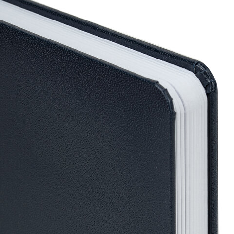 Внутренний блок включает 160 листов белой бумаги плотностью 70 г/м2. Каждая страничка имеет перфорированный угол. Благодаря стандартному формату А5 ежедневник удобно использовать как в офисе, так и на выездных деловых встречах. Твердая обложка, стилизованная под гладкую кожу., подходит только для тиснения фольгой. Дополнением является закладка-ляссе, с помощью которой при необходимости можно быстро открыть ежедневник на нужной странице. Помимо прочего ежедневник снабжен обширным справочным материалом.