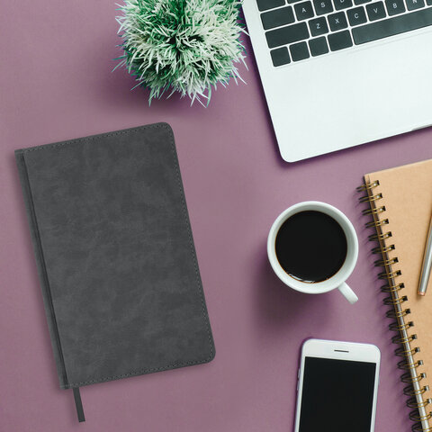 Ежедневник недатированный А5 135х210мм BRAUBERG Felt на гребне, войлок, кнопка 160л, серый, 117133