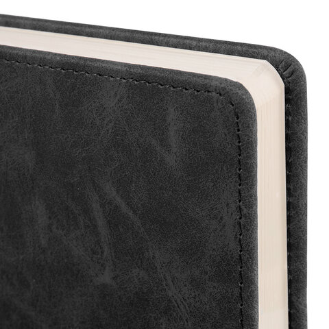 Внутренний блок включает 160 листов тонированной бумаги плотностью 70 г/м2. Каждая страничка имеет перфорированный угол. Благодаря стандартному формату А5 (138х213 мм) ежедневник удобно использовать как в офисе, так и на выездных деловых встречах. Твердая обложка стилизована под фактурную кожу. Подходит для горячего тиснения. Дополнением является закладка-ляссе, с помощью которой при необходимости можно быстро открыть ежедневник на нужной странице.