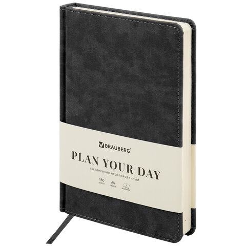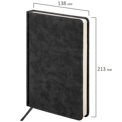 Ежедневник недатированный А5 143х210мм BRAUBERG Deluxe, под кожу, магнит 160л, черный, 117414, 117141
