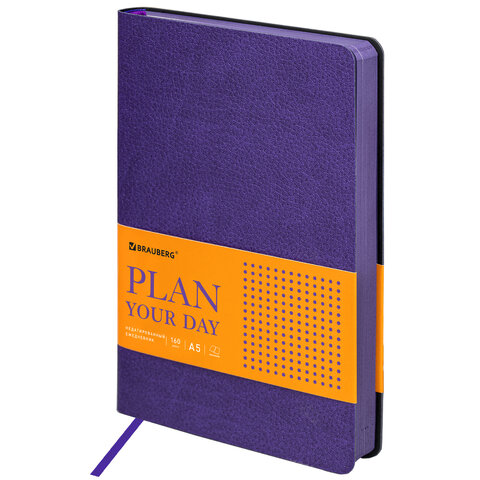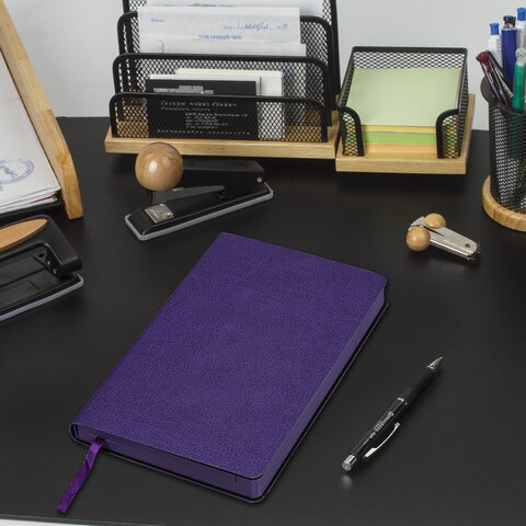 Внутренний блок включает 160 листов тонированной бумаги плотностью 70 г/м2. Каждая страничка имеет перфорированный угол. Благодаря стандартному формату А5 (138х213 мм) ежедневник удобно использовать как в офисе, так и на выездных деловых встречах. Мягкая (интегральная) обложка стилизована под фактурную кожу. Подходит для горячего тиснения. Дополнением является закладка-ляссе, с помощью которой при необходимости можно быстро открыть ежедневник на нужной странице. Помимо прочего ежедневник снабжен справочным материалом. Выполнен в насыщенном фиолетовом цвет