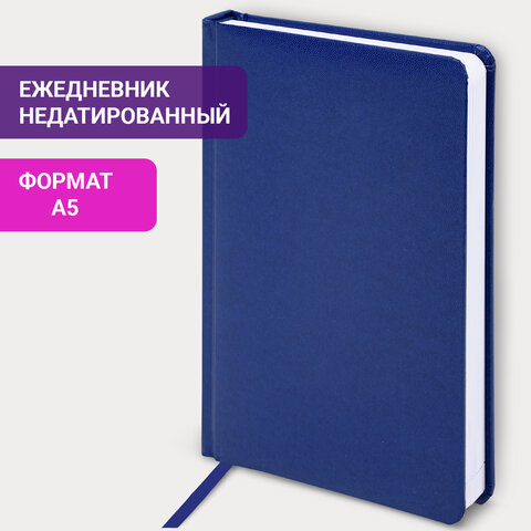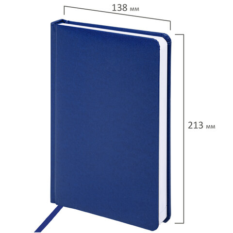 Внутренний блок включает 160 листов белой бумаги плотностью 70 г/м2. Каждая страничка имеет перфорированный угол. Благодаря стандартному формату А5 (138x213 мм) ежедневник удобно использовать как в офисе, так и на выездных деловых встречах. Твердая обложка стилизована под гладкую кожу. Подходит только для тиснения фольгой. Форзац ежедневника представлен картами мира и России. Дополнением является закладка-ляссе, с помощью которой при необходимости можно быстро открыть ежедневник на нужной странице. Помимо прочего ежедневник снабжен обширным справочным материалом. Выполнен в синем цвете.