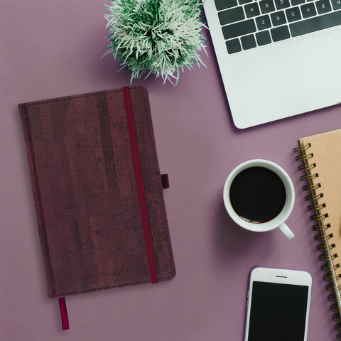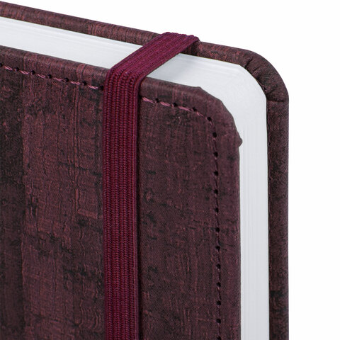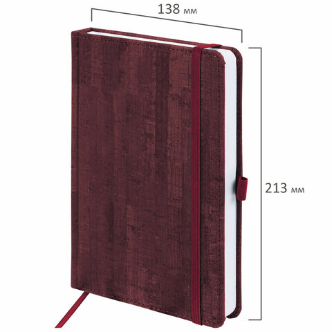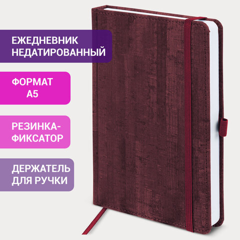 Внутренний блок включает 136 листов белой бумаги плотностью 70 г/м2. Каждая страничка имеет перфорированный угол. Благодаря стандартному формату А5 (138х213 мм) ежедневник удобно использовать как в офисе, так и на выездных деловых встречах. Твердая обложка стилизована под благородное дерево. Подходит для горячего тиснения. Снабжен резинкой-фиксатором, благодаря чему ежедневник не откроется в сумке или портфеле. Форзац ежедневника представлен картами мира и России. Дополнением является закладка-ляссе, с помощью которой при необходимости можно быстро открыть ежедневник на нужной странице и держатель для ручки. Помимо прочего ежедневник снабжен справочным материалом. Выполнен в насыщенном бордовом цвете.