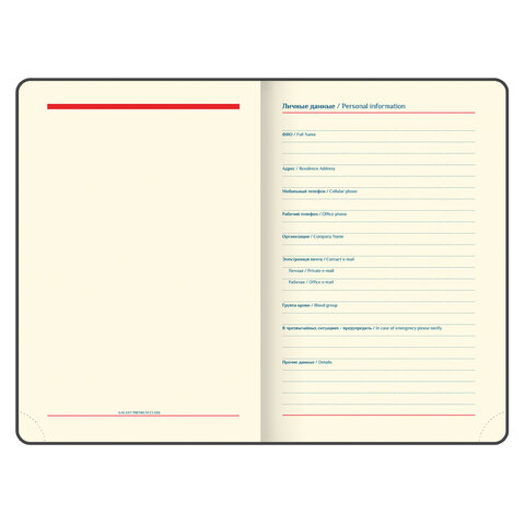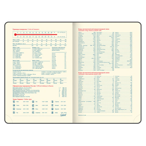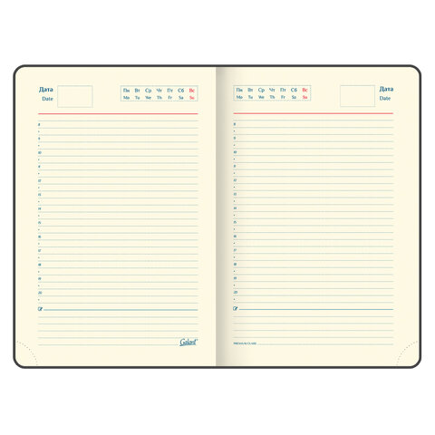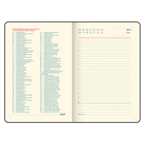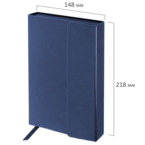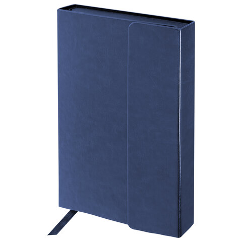 Внутренний блок включает 160 листов тонированной бумаги плотностью 70 г/м2. Каждая страничка имеет перфорированный угол. Благодаря стандартному формату А5 ежедневник удобно использовать как в офисе, так и на выездных деловых встречах. Интегральная обложка, стилизованная под гладкую кожу, фиксируется магнитным клапаном, поэтому ежедневник не откроется в сумке или портфеле и страницы не помнутся. Подходит для горячего тиснения. Срез и форзац ежедневника окрашены в цвет обложки, что придает ему особый шарм. Дополнением является закладка-ляссе, с помощью которой при необходимости можно быстро открыть ежедневник на нужной странице. Помимо прочего ежедневник снабжен обширным справочным материалом.