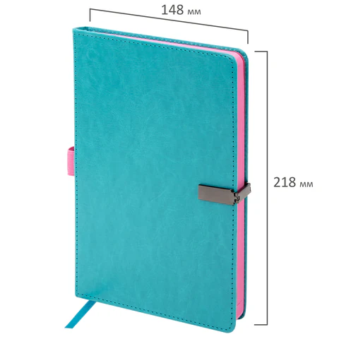 Ежедневник недатированный А5 148x218 мм, BRAUBERG "Inspiration", под кожу, застежка, цветной срез, 160 листов, синий, 118649
