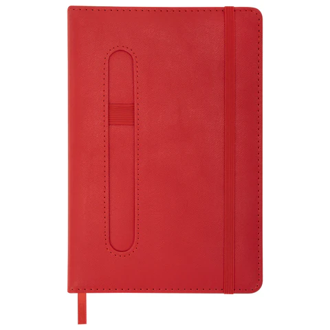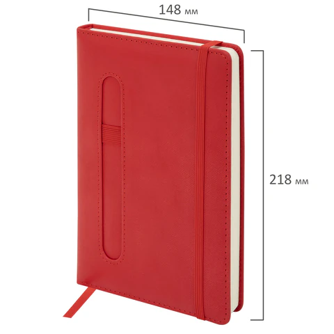 Внутренний блок включает 160 листов тонированной бумаги плотностью 70 г/м2. Каждая страница снабжена перфорированным уголком. Благодаря стандартному формату А5 (148х218 мм) недатированный ежедневник удобно использовать как в офисе, так и на выездных деловых встречах. Твердая обложка стилизована под старинную кожу в рубчик и выполнена в стильном красном цвете. Подходит для горячего тиснения.