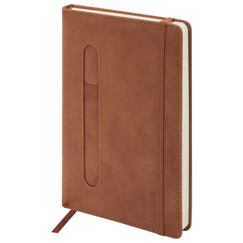 Ежедневник недатированный А5 148x218 мм BRAUBERG "Optimal", под кожу, 160 листов, резинка, держатель для ручки, бежевый, 118642