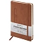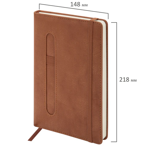Внутренний блок включает 160 листов тонированной бумаги плотностью 70 г/м2. Каждая страница снабжена перфорированным уголком. Благодаря стандартному формату А5 (148х218 мм) недатированный ежедневник удобно использовать как в офисе, так и на выездных деловых встречах. Твердая обложка стилизована под старинную кожу в рубчик и выполнена в стильном коричневом цвете. Подходит для горячего тиснения.